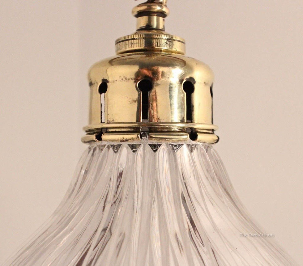 ANTIQUE HOLOPHANE & BRASS PENDANT LAMP